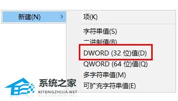 3. 之后右击空白处,点击新建,选择“DWORD(32位)值”。