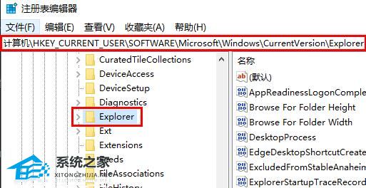 HKEY_CURRENT_USER→Software→Microsoft/Windows→CurrentVersion→Explorer