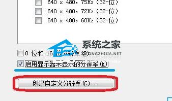 4. 在其中勾选“启用显示器未显示的分辨率”再打开“创建自定义分辨率”。