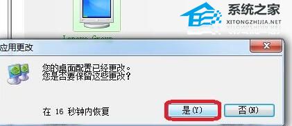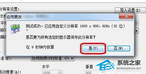 8. 最后点击“是”应用更改就可以使用自定义分辨率了。