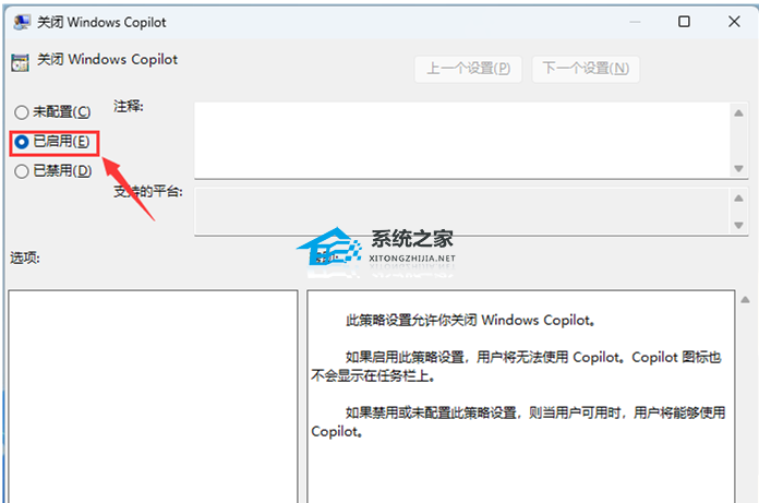 4. 关闭 Windows Copilot窗口,设置为【已启用】即禁止使用Copilot。