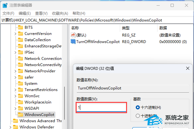 注:重新启用Windows Copilot,只需要将其键值从【1】修改为【0】即可,修改后为立即生效。