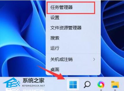 1. 首先右键点击开始菜单,选择“任务管理器”打开。