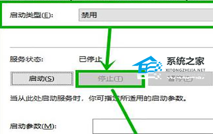 3. 在打开的属性界面中,找到“基本”选项,并将“启动类型”设置为“禁用”,最后点击“停止”即可。