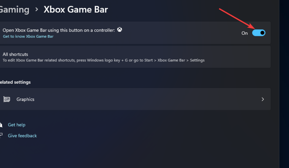 然后使用控制器选项上的此按钮单击关闭打开Xbox 游戏栏的切换按钮。