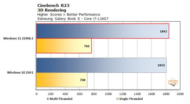 Win11相比Win10,在多线程上有5.8%的优势,在单线程上则有2%的优势。Win11的性能对比Win10更好,但提升幅度并不算特别的高,后期版本的表现应该会更好。