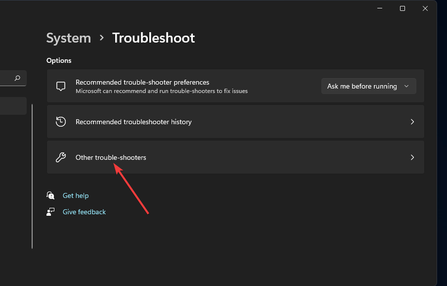 选择其他疑难解答以在“设置”中显示疑难解答列表。