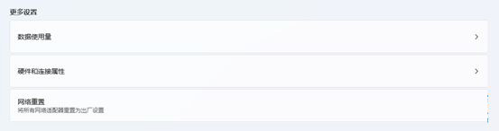 3、更多设置下,点击【网络重置(将所有网络适配器重置为出厂设置)】;