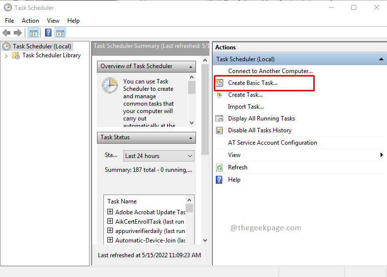 第 2 步:单击任务计划程序窗口中的创建基本任务。