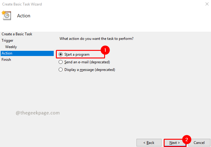 第 6 步:选择在任务操作中启动程序,然后单击下一步。