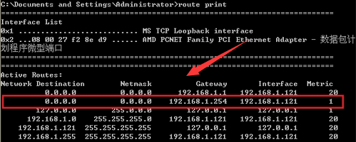 4、最后可以用route命令删除那个错误网关的路由就好了。