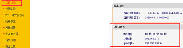 3、点击“运行状态---LAN口状态”、wan口状态即可查看。