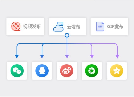 支持输出多种视频格式,如mp4/mov/wmv/avi/flv/mkv;高清输出,LED大屏播放毫无压力;还支持输出GIF动图; 一键上传云端,轻松分享至微信、QQ、微博等社交平台。