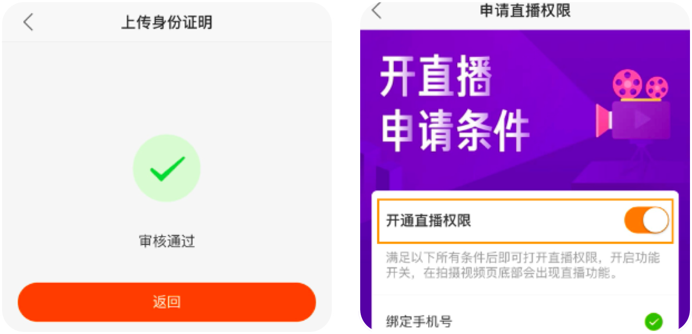 在申请直播权限页面按照引导填写资料,完成申请,审核通过后即可开通直播功能。