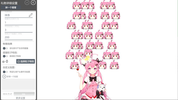 礼物掉落互动,立绘与礼物的物理碰撞效果可以给观众更好的互动体验(此功能支持FaceRig输出)。