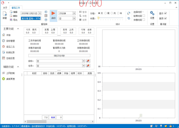 它的番茄钟功能基于番茄工作法,可以灵活地设置每个番茄钟的时间,自定义背景声音,为了方便您在工作和学习时看 到当前进度,它可以在桌面右下角的通知区域显示哦。还有它的统计功能十分强大,可以按天、周、月、年,甚至时段来统计您的 工作时间。