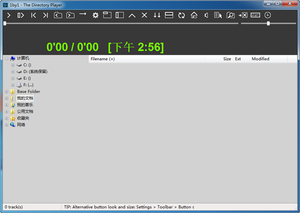 1by1汉化版能播放少至一个目录多至整个硬盘内的多个文件而无需播放清单。您可以简单地在类似资源管理器的文件和文件夹视图的界面中开始播放你的曲目,通过命令行载入曲目(例如:已链接其文件类型)或将其拖放到程序界面上。
