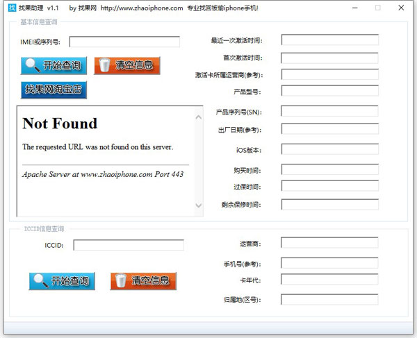 根据手机imei或序列号查询iphone手机的最近一次免费时间和保修信息,根据iccid查询iccid对应的归属地信息。
