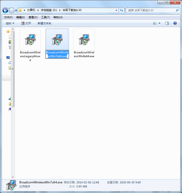 1、在系统之家将Apple苹果电脑Broadcom无线网卡驱动下载下来,解压到当前文件夹内,点击其中的BroadcomWirelessWin7x64.exe应用程序。