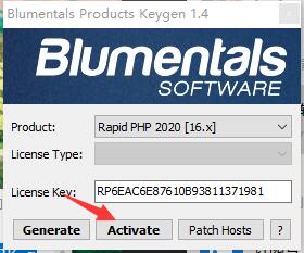 4、再选择Rapid PHP 2020点击generate得到免费码;