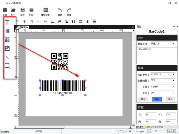 1、支持文本、直线、条码、二维码、日期、图片、图形(圆形、圆角矩形、矩形、椭圆)打印。