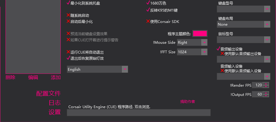 5、支持1680万色,如是Rgb版本请勾选,非K95用户请不要勾选。