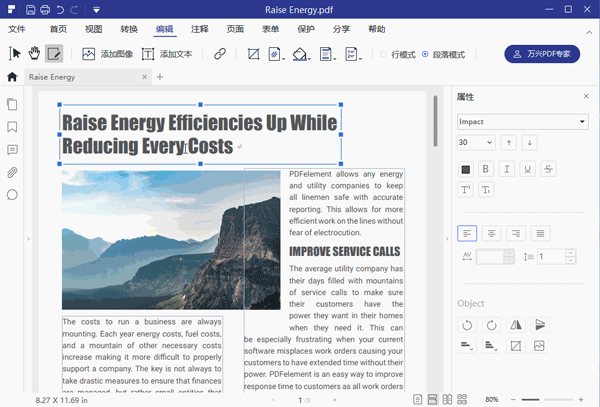 1、万兴pdf专家提供PDF编辑功能,可以直接在软件编辑PDF。