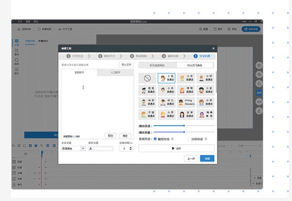 如果不想真人配音,则可以输入文字生成语音朗读:多种角色可供选择(男士、女士、儿童、卡通); 方言轻松转换(普通话,粤语, 英语, 其他方言)。