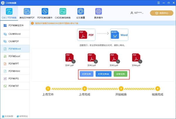 可将CAJ格式文件转换成Word之外,软件几乎支持所有的文件格式转换,包括pdf转word、Excel转PDF、PDF分割等,可帮助用户轻松实现文档格式转换。