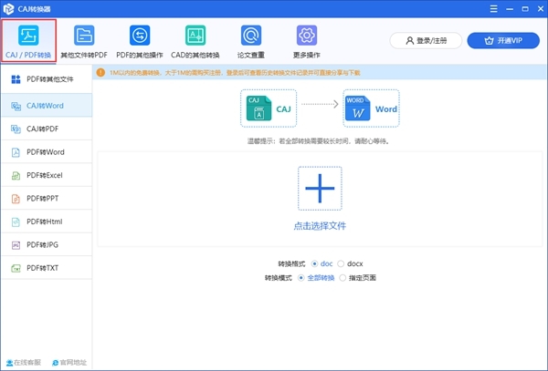1、CAJ/PDF转换可以将CAJ或PDF文档转换成其他文件格式。包含:CAJ转Word、CAJ转PDF、PDF转Word、PDF转Excel、PDF转PPT、PDF转html、PDF转JPG、PDF转TXT;