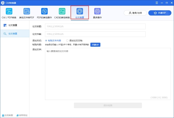 5、论文查重可以完成论文查重的操作,支持添加论文文档、或粘贴文本内容两种查重方式;