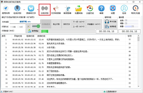 3、可以对自己录音好的文件进行在线的识别以及保存文字等功能;