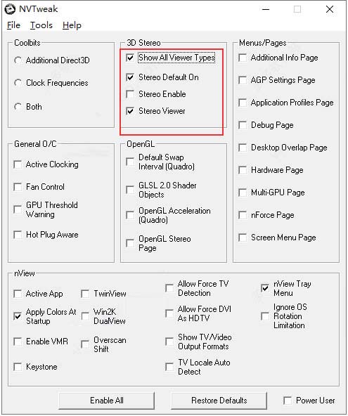 2、完成设置后,NVTweak将自动打开,您可以根据自己的喜好进行调整。检查您的NVIDIA属性(您不必退出程序或重新启动),您将在NVIDIA控制面板中看到许多新的可配置选项。