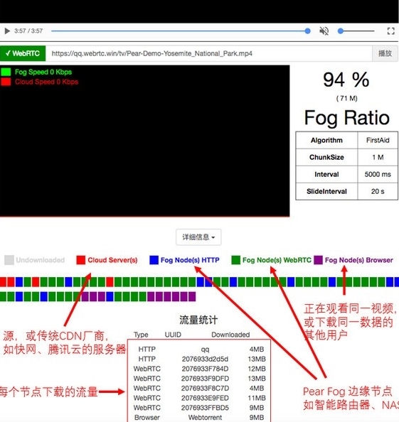 基于H5的MSE(Media Source Extension)技术将来自多个源节点的Buffer分块喂给播放器,再加上精心设计的算法可实现最优的调度策略及对各种异常情况的处理,PearPlayer由此能在保证用户流畅视频体验的前提下最大化P2P率。