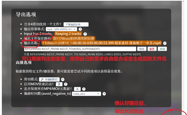 对当前选中的素材分段并标签完毕后,点击导出,格式建议选择源视频文件的格式。