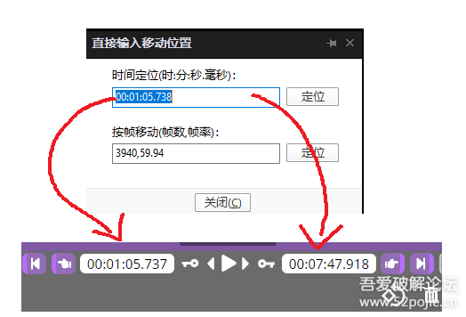 在PotPlayer上选定位置,直接按快捷键“G”,就会调出时间定位。直接复制他的定位时间,格式是与LosslessCut完全一致的,可以直接粘贴到LosslessCut的开始或结束位置。
