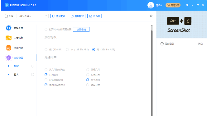8、支持为文档添加密码,限制从文件复制内容,打印文件,对低质量限制等操作;