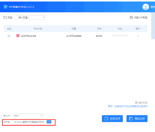 9、设置完成后,在软件左下角选择输出的文件类型,默认输出为PDF;
