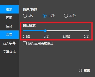 在播放页面按下F4键,即可调节播放速度。