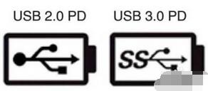 (4)、标识区分法:根据在插口旁边的符号来区分,如下图。USB3.0的“SS”代表着“SuperSpeed”
