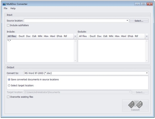 该应用程序背后的想法并不那么复杂。它可以帮助用户将各种文档转换为特定格式。这意味着,如果您有一个充满DOC,ODT,HTM和EPUB文件的文件夹,则只需单击转换按钮,即可一次将所有文件转换为特定的文档格式。顺便说一句,转换按钮可能是整个窗口中最引人注目的区域。该应用程序将允许用户调整过程,更精确地包括或排除特定文件类型。如果您只想更改ODT文件,则可以这样做。如果需要,包括子文件夹,这是完全可能的。