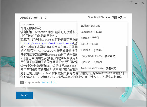 3、默认安装目录C:Program FilesAutodesk,下一步;