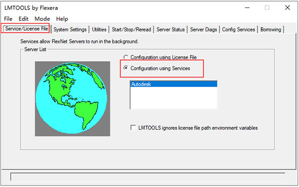 12、在service/license file选择 configuration using services 勾选’ignore license file path env var;