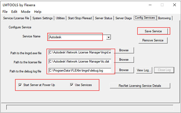 11、在C:AutodeskNetwork License Manager里启动lmtools.exe,在config services里,添加Autodesk作为服务名称;