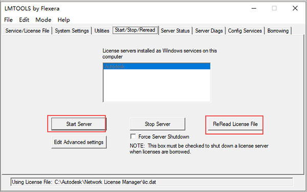 13、在start/stop/read点击start server,点击rereadlicense file;