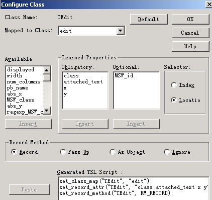当你在软件操作中点击 GUI(图形用户界面)对象时,WR 会用一种类 C 的测试脚本语言(TSL)生成一个测试脚本。你可以用手工编程的方法编辑这个脚本。WR 包括的功能生成器(Function Generator)可以帮助你快速简便的在已录制的测试中添加功能。WR 包括两种录制测试的模式。