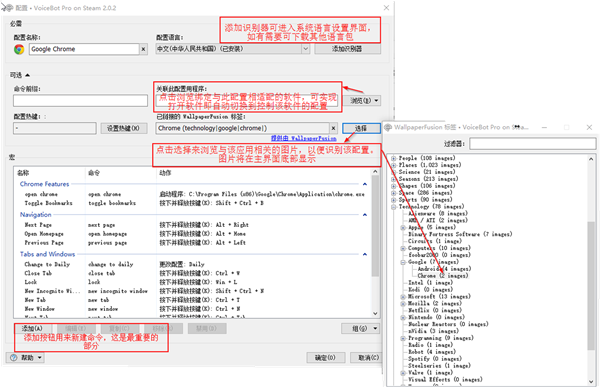 假如我现在想设置一个启动Chrome程序的语音命令,点击或新建一个Chrome配置文件以后,