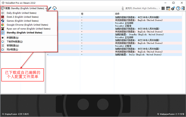 同步配置文件:如果你有二进制堡垒帐户(点击注册),点击可与VoiceBot服务器同步并储存你的配置文件(事实是只要你登陆后,每一次更改都会自动保存,无需跑到这里)。