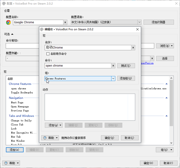 名字下方的“名称作用命令”,如果选中则意味着刚才那个名字即为唤醒该操作的语音命令,你每次都需要说出“启动chrome”才能够打开浏览器;如果不勾选,则需要另外为该操作设置一个简单好记的唤醒命令,如我把命令设置为“open chrome”或直接一个“chrome”。也就是说,命令才是你需要喊出的指令。