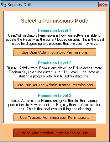 Registry Drill不仅具有自动的注册表清理程序,还可以像其他所有注册表清理程序一样清理注册表;但在Windows Vista及更高版本上,它可以读取其他软件无法读取的密钥。如果您使用的是Windows 2008或更高版本,Registry Drill将为您提供3级权限来使用Registry。受信任的管理员级别可以读取和写入您作为“管理员”不能执行的密钥。